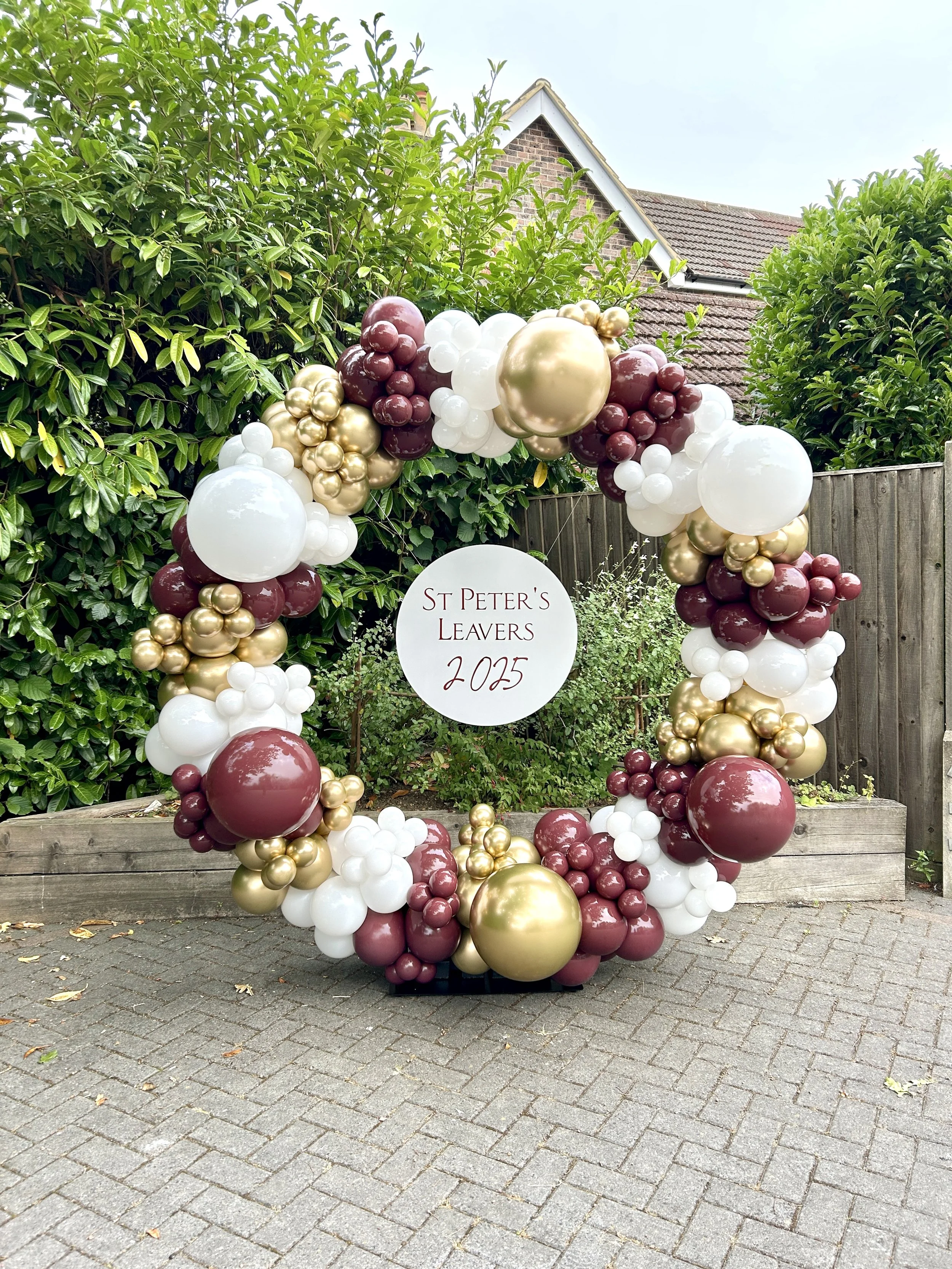Our balloon hoop displays can be customised to match your choice of balloon colours, sizes, and décor preferences. We can also incorporate large foil numbers, LED signs, vinyl lettering and character balloons to hang or sit within your display for added personalisation.