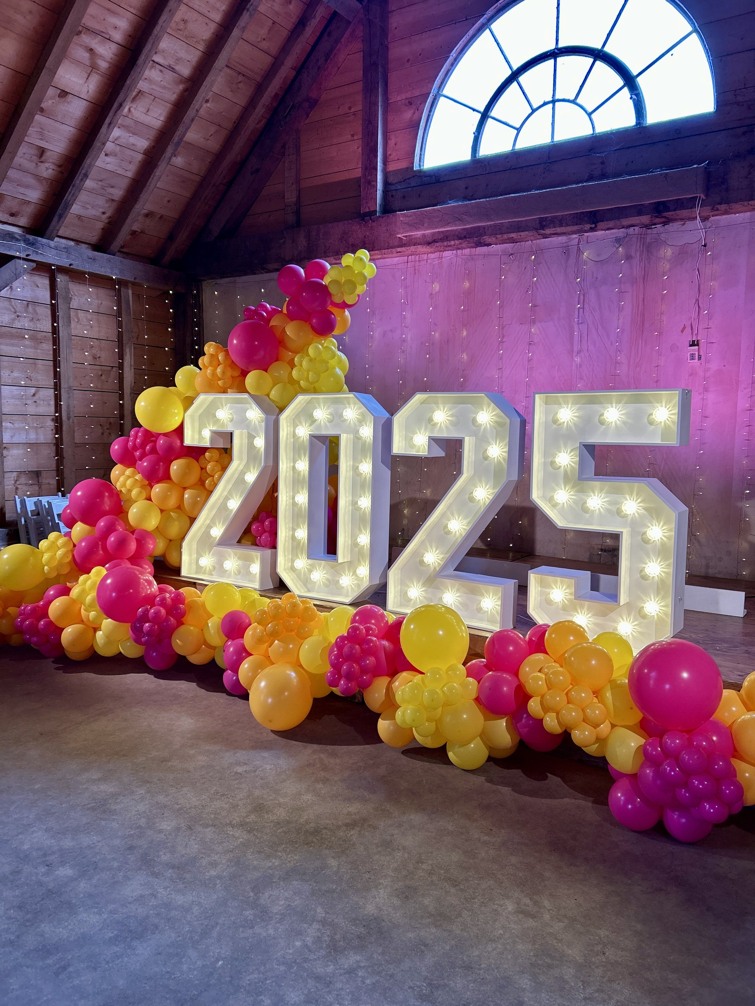 light up 2025 and silver shimmer wall with balloon garland at the felbridge hotel