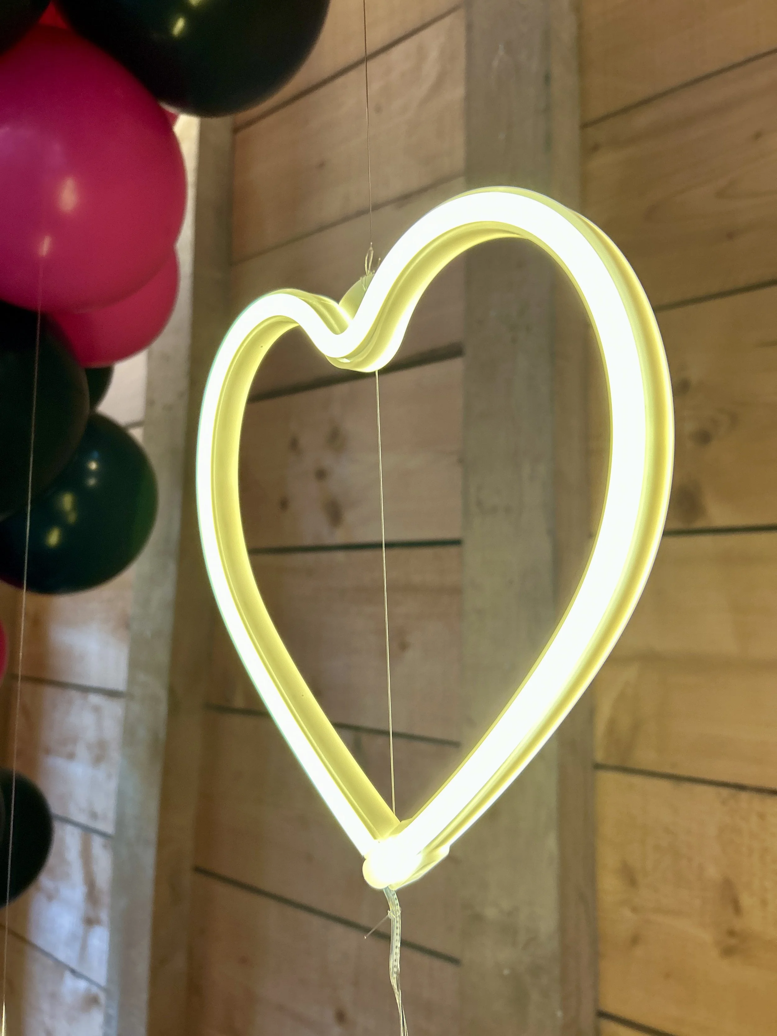 In September we were asked to be a part of The Quirky Wedding Fair at the beautiful Yogurt Rooms in East Grinstead. Vibrant colours were chosen to surround our light up numbers to provide the centrepiece for the event. We also created a fun hoop display with hanging light up hearts. Our feature lighting created a romantic backdrop!