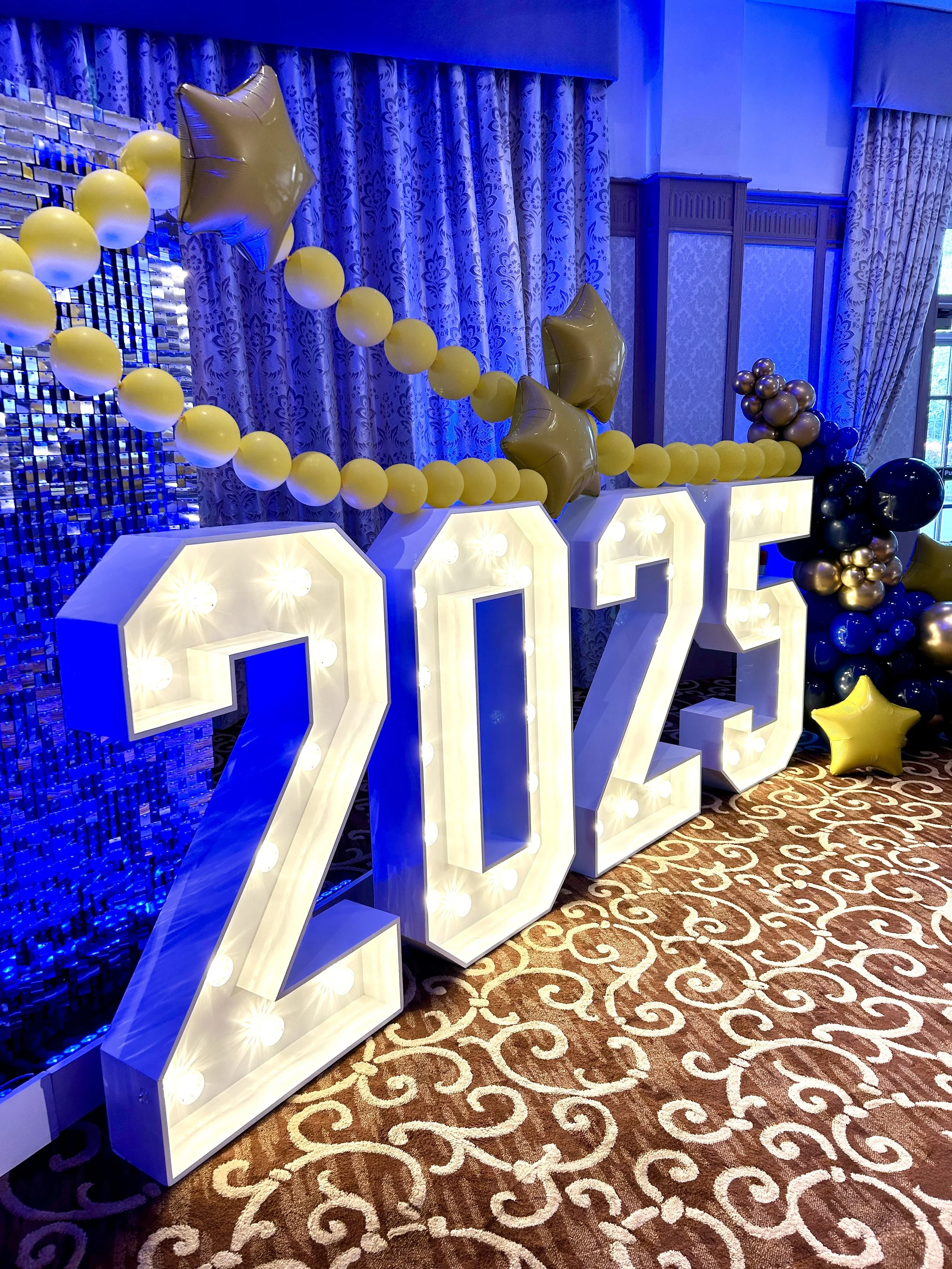 We specialise in creating balloon displays, garlands hoops and sequin backdrops to accompany your illuminated numbers. Everything you could need for your next event!
